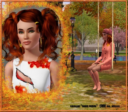 | спасиб, МАРТочка))) мне дюже приятно)) balovnitsa, твоя симочка очень гламурная с красивыми глазами..мне тоже больше понравилась вторая прическа)) здорово! Добавлено (15.09.2010, 07:31) --------------------------------------------- не знала куда оформить это фото..но этот скрин участвует в конкурсе " мисс осень" представьте себе, что меня вчера с вами небыло именно из-за него)))) я один только парк строила пол дня..жаль, что его всего не видно. а скринов сколько нащелкала!!!!!!! забила ими все свои полтора террабайта..(шутю Я ))) а это так..жалко пропадает, ни кто не увидит)))